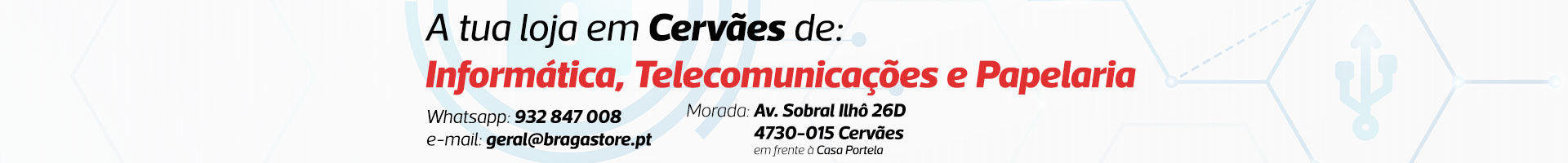 Os preços e produtos disponibilizados em www.bragastore.pt são unicamente válidos para pedidos de compra realizados através do site www.bragastore.pt, podendo não coincidir com os preços praticados em loja BRAGASTORE.PT - A TUA LOJA ONLINE.